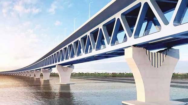 The Padma Bridge is a multipurpose road-rail bridge across the Padma River, globally known as the Ganges, under construction in Bangladesh. It will connect Louhajong, Munshiganj to Shariatpur and Madaripur, linking the south-west of the country, to northern and eastern regions. Padma Bridge is the most challenging construction project in the history of Bangladesh. The two-level steel truss bridge will carry a four-lane highway on the upper level and a single track railway on a lower level. With 150.12 m (492.5 ft) span, 6.241 km (3.878 mi) total length and 18.18 m (59.6 ft) width, it is going to be the longest bridge in Bangladesh, the second longest in the Indo-Gangetic Plain afterBhupen Hazarika Setu in Assam and the longest over Ganges in terms of both span and the total length. Padma Bridge, when commissioned, is expected to boost the GDP of Bangladesh by as much as 1.2 percent. History The Bangladesh Bridge Authority (BBA) invited the pre-qualification tender for the project in April 2010. Construction of the bridge was expected to commence by early 2011 and be ready for major completion in 2013 (and complete all sections by late 2015). After allegation of corruption by some people associated with project preparation the World Bank withdrew its commitment and other donors followed. The Government of Bangladesh then decided to fund the project from its own fund. China proposed building the bridge on the build-own-transfer (BOT) basis by investing $2 billion or 70 percent of the project cost. Four companies—China Major Bridge Engineering Company, Daelim-L&T JV and Samsung C&T Corporation—purchased the tender papers. But only the Chinese company submitted their financial proposal on 24 April 2014. On 17 June 2014, important progress had been made in the construction of the Padma Bridge. A construction firm, China Major Bridge Engineering Company Ltd, has been selected to construct the long aspired bridge on the river Padma. The 6.15 km bridge, costing an estimated ৳91.72 billion (US$1.1 billion). Overview of Padma Multipurpose Bridge Project Design Team :- The detailed design of the Padma Multipurpose Bridge is being delivered by a team of international and national consultants headed by AECOM.The team comprises AECOM, SMEC International, Northwest Hydraulic Consultants and ACE Consultants, with additional assistance from Aas-Jakobsen and HR Wallingford. The Project comprises two phases. Phase 1 of the Project includes the Design Phase leading through procurement action to the award of construction contracts. Phase 2 is the Construction Phase. Phase 1 of the project commenced on 29 January 2009. A dedicated Project Office was set up in Dhaka in March 2009. Detailed design of the main bridge was carried out in AECOM's Hong Kong office. All work carried out by the design team was carried out within the framework of AECOM's Quality Management System (QMS) which is independently accredited to AS/NZS ISO 9001. The QMS is designed to control all project work undertaken by the team. A project-specific Design Management Plan was established at the outset of the project, In March 2009, the Government of Bangladesh requested AECOM to accelerate the design with a view to ensuring construction could be completed before the end of 2013. This necessitated the mobilization of additional personnel within the design team. Bangladesh Bridge Authority (BBA) established an internationally recognized Panel of Experts comprising five national and five international experts to review the design at regular intervals. In addition, an Independent Checking Engineer, Flint & Neill, was engaged to review the design criteria, specification and drawings produced by the design team to ensure the design meets the project requirements and to undertake an independent check of the detailed design of the main bridge and river training works. A key feature of the detailed design was the integration of Bangladesh counterparts into the design team, which allowed the successful training of a significant number of Bangladesh personnel in all aspects of the project and the subsequent transfer of the high level of technology involved in this large and complex project. Component of the project : 1. Main Bridge 2. River Training Works(RTW) 3. Janjira Approach Road & Selected Bridge End Facilities 4. Mawa Approach Road & Selected Bridge End Facilities 5. Service Area-2 6. Resettlement 7. Environment 8. Land Acquisition 9. CSC(Main Bridge & RTW) 10. CSC(Approach Roads & Service Area-2) 11. Engineering Support & Safety Team(ESST) Padma bridge in under construction: As of October 2020, around 89.25% of the construction of the 6.15-kilometre-long two-tier Padma Multipurpose Bridge has been completed. The China Major Bridge Engineering Corporation (MBEC), which was appointed for the main bridge, will carry out the work. The soil testing and dredging works have been going on for the last four months for the river training. The bridge will have a total of 42 pillars. Each will have six piles beneath. Steel spans will be placed on the pillars. The bridge will have a total of 41 spans. Work on the Padma Bridge is broadly divided into five parts—the main bridge, river training, two link roads and infrastructure (service area) construction. China's Sinohydro Corporation was appointed for the river training works while Bangladesh's Abdul Monem Limited was given the contract for the two link roads and infrastructure construction. In October 2017, more than one and a half years after the main construction work began, the first span was installed between pillars 37 and 38, indicating timely progress on the project. As of November 2020, construction of 42 pillars out of 42 has been completed. A total of 35 spans out of 41 has been installed. Controversy: From the beginning, the Padma bridge negotiation had been involved in controversy and conspiracy. The World Bank stated that they found, "credible evidence corroborated by a variety of sou