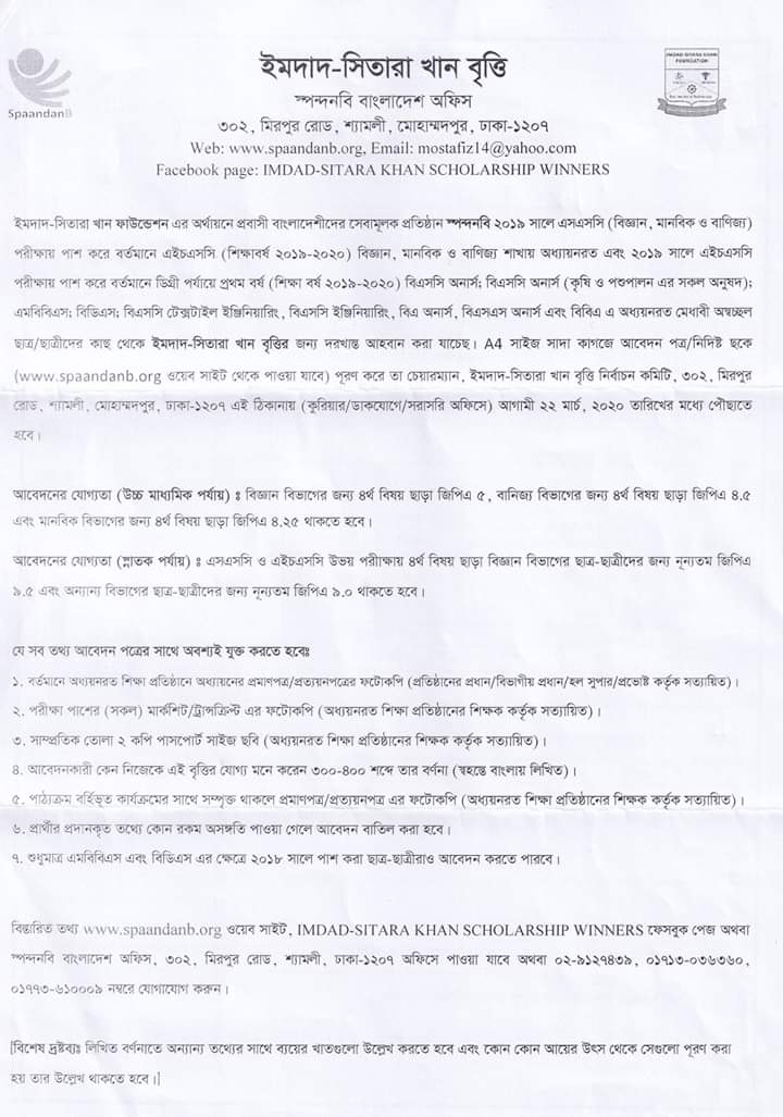 Imdad Sitara Khan scholarship notice 2020. Last date for application is 22 March, 2020. Answered by Birds of the sky (2 Golds) Sunday, 15 Mar 2020, 11:15 PM