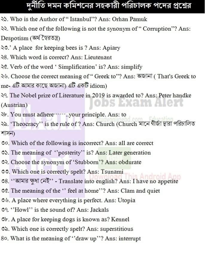 Anti corruption Commission DUDOK Assistant Director question solution. দুদক সহকারী পরিচালক প্রশ্ন সমাধান Read 100% correct Full solution. Answered by Birds of the sky (2 Golds) Saturday, 29 Feb 2020, 02:16 AM